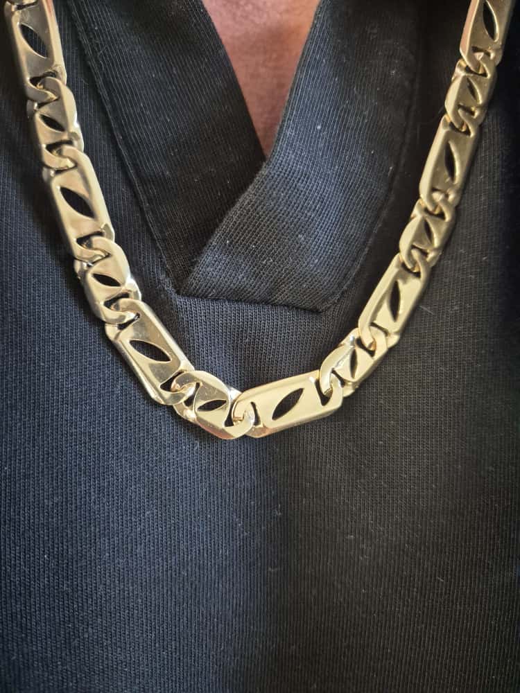 Ten złoty łańcuch męski Mariner to kwintesencja męskiego stylu i prestiżu. Wykonany z pełnego złota próby 585, zachwyca solidnym wykonaniem i doskonałym połyskiem. Każde ogniwo precyzyjnie dopracowane, tworzy harmonijną całość o imponujących parametrach: